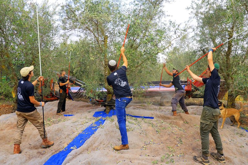 מסיק זיתים מסורתי - חובטים קלות בענפי עץ הזית באמצעות מוטות